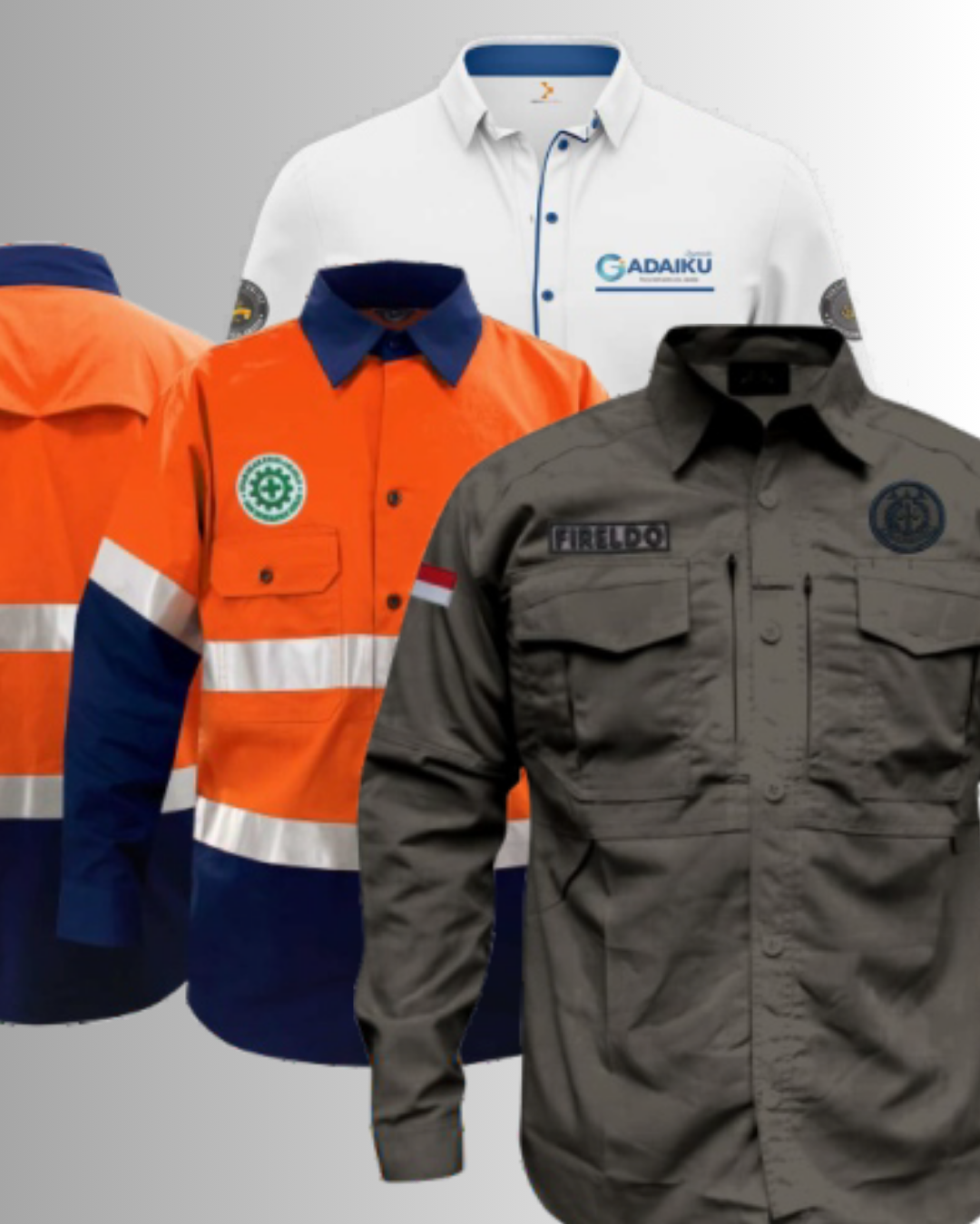 Kemeja kantor, seragam PDL/PDH, dan wearpack safety.